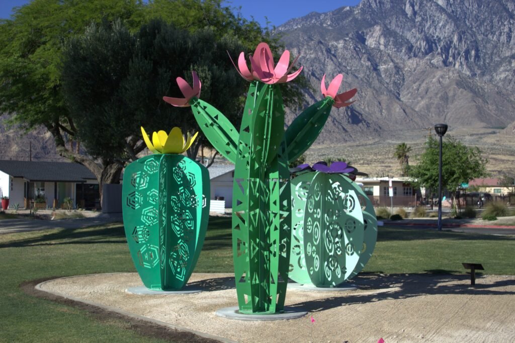 A composition of 3 cacti that represent the diversity of the community of Palm Springs while also honoring the native flora to the region. We come in all shapes and sizes but share a common thread.
